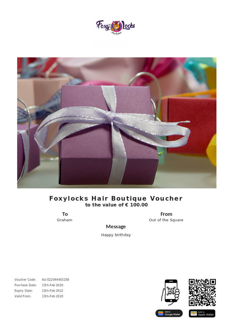 Foxylocks Hair Boutique allows you to purchase instantly printable gift vouchers, special offers and tickets using the Voucher Connect platform.